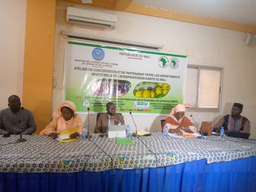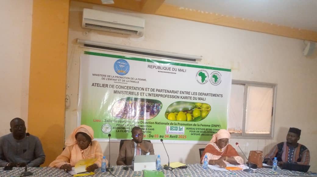 Un atelier de concertation et de partenariat s’est tenu le jeudi 3 avril 2025 à Bamako, marquant une étape importante dans la collaboration entre les départements ministériels maliens et l’Interprofession de la filière karité du Mali (IFIKAR). L’événement a rassemblé des représentants de haut niveau, notamment le ministère de l’Agriculture, le ministère de la Promotion de la femme, de l’enfant et de la famille et du ministère de l’Industrie et du commerce, ainsi que des acteurs clés de la filière karité et des partenaires au développement.